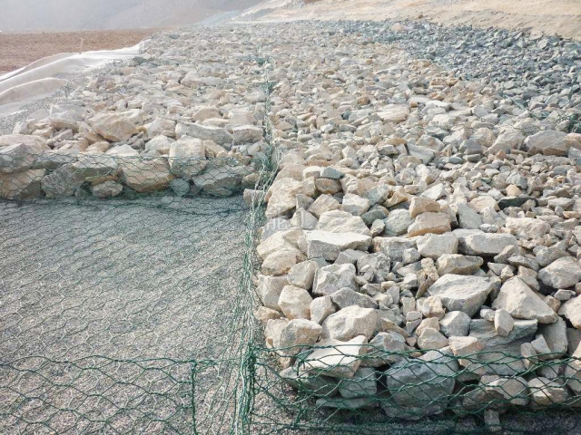 1、材料運輸: 賽克格賓是機織網(wǎng),經(jīng)過選絲、織網(wǎng)、剪片、勾邊、檢驗等一系列程序編織而成。格賓網(wǎng)可以是卷狀的,也可也將籠子壓縮、打包,以便于工人將處理裝箱和裝船,綁絲以卷的形式提供。最好將格賓網(wǎng)放入干燥的環(huán)境中,綁緊,便于裝船。